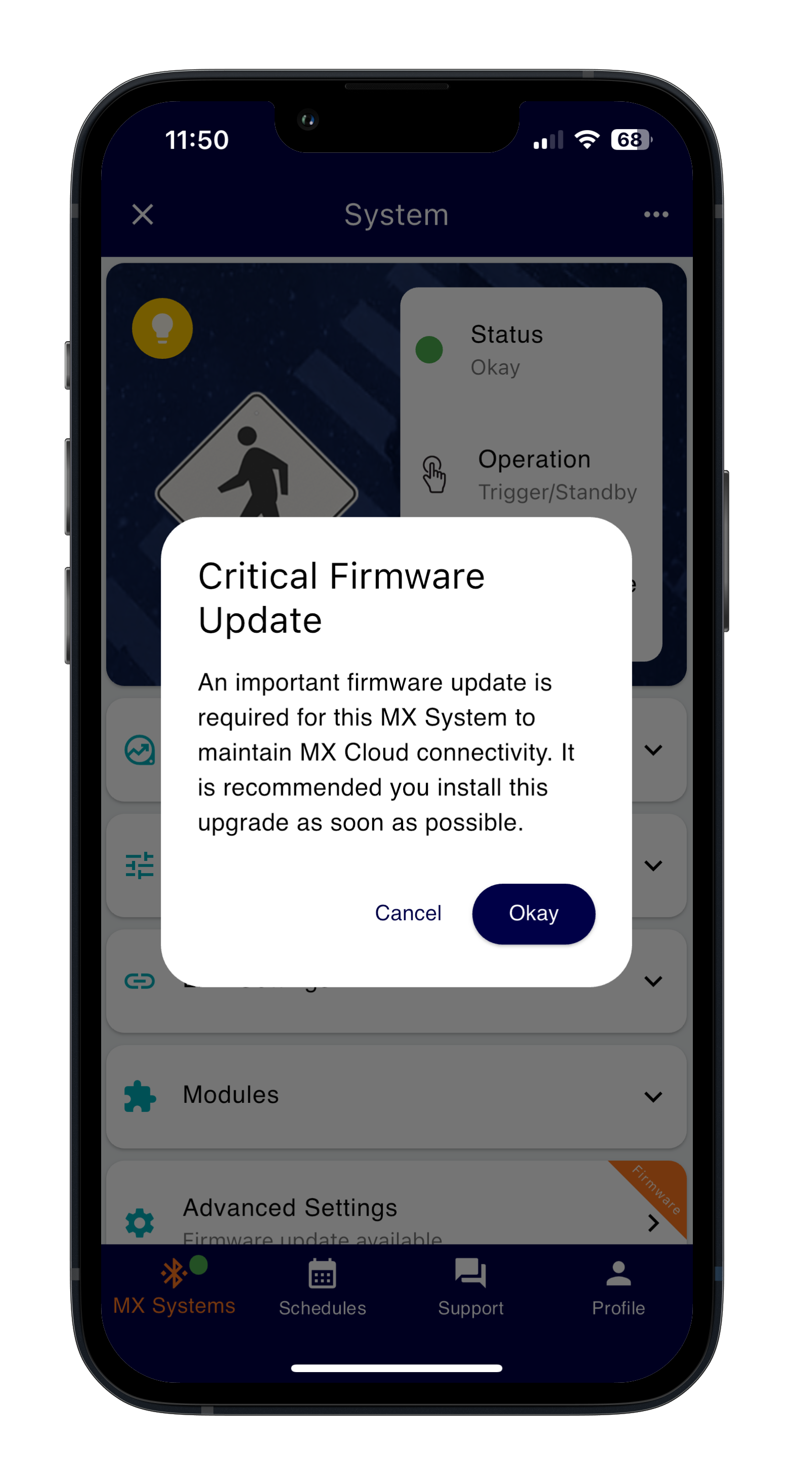 In November 2024, Carmanah deployed a critical firmware update that will be automatically applied to MX Series systems. This firmware update to designed to keep your system running smoothly as we transition to upgraded cellular technology, ensuring long-term reliability, security and performance.